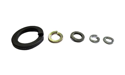 Spring washers are disks of metal that form of irregular shape, so that when the washer is loaded it acts like a spring and deflects providing a preload between the two surfaces. There are many different spring washer.